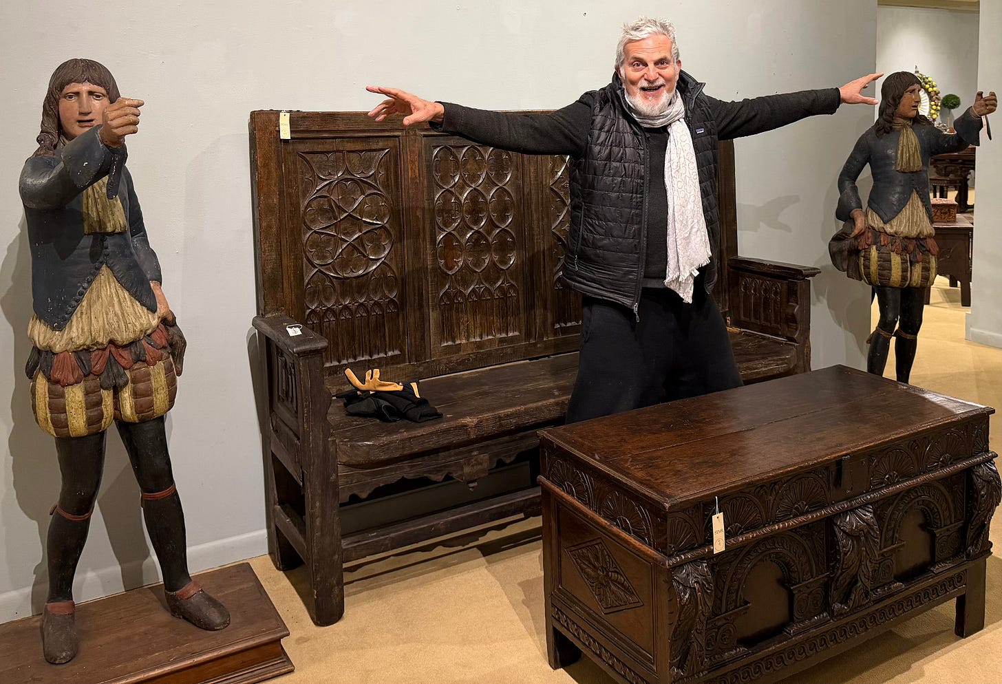 When friends comes to visit me, I always take them on a walk from here at the top of Windmill Hill, down Warren Street all the way to the river. It is an extraordinarily difficult gauntlet to run, given the irresistible shop windows on every single block. A couple of days ago, while enjoying this walk with my friend Krisztina from Budapest, STAIR Gallery had its “AUCTION PREVIEW” sandwich board on the sidewalk, to announce its upcoming auction The Fortress: 500 Years of Furniture and Decorative Arts. Bringing together sumptuous objects spanning five centuries, from the Italian Renaissance through the Baroque and William and Mary periods, the auction takes its name from The Fortress, a Troy architectural treasure that has been home since 2007 to NYC antiques dealers Antonie Reinhard and Maurice Margules.